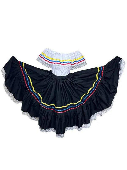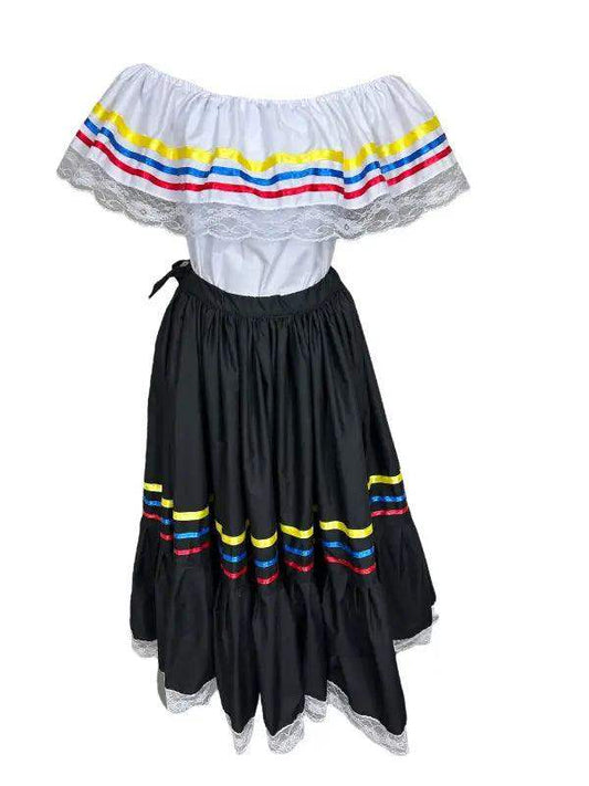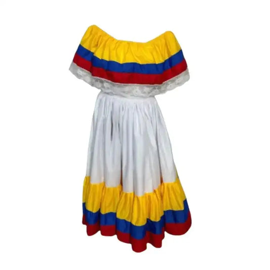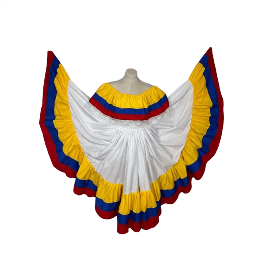Colombia Traditional Dress Embrace the vibrant essence of Colombia with our Traditional Dress, elegantly crafted to reflect your style and cultural pride. This exquisite ensemble features a blouse and skirt, complemented by a charming flower clip, making it ideal for various occasions. Complete Set: Includes a beautifully designed blouse, flowing skirt, and a decorative flower clip for an authentic look. Size Range: Available in XSmall to XXLarge, ensuring a perfect fit for everyone. Skirt Length: Approximately 36 inches, offering a flattering silhouette. Material: Crafted from high-quality Poly Cotton (Dacrón) for ultimate comfort and style. Care Instructions: Recommended hand-wash to preserve fabric quality and longevity. This perfectly tailored dress allows you to showcase your love for Colombian heritage. Whether you're attending a festive celebration or enjoying a sunny day, this Traditional Dress will undoubtedly become a cherished addition to your wardrobe. Experience the joy of cultural expression and create beautiful memories with family and friends while wearing this stunning outfit! Check our collection: Colombian Collection