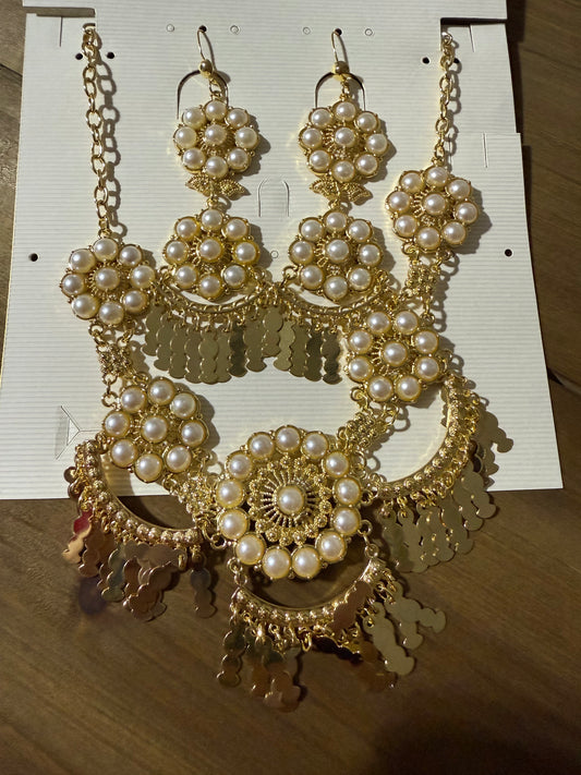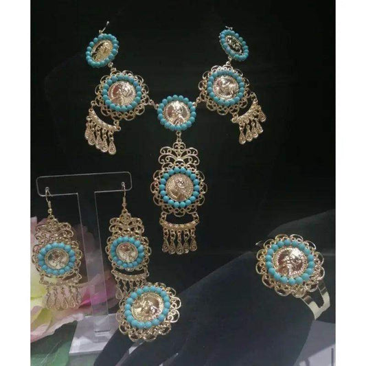 Elegant Panamanian Pollera Stainless Steel Jewellery Set Gold Plated