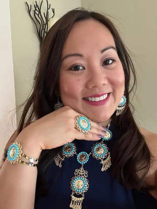 • Sale -9% Elegant Panamanian Pollera Stainless Steel Jewellery Set Gold Plated - VivianFongDesignsLLC
