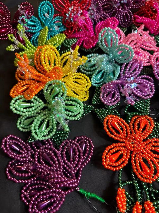 Elevate your traditional Panamanian folkloric attire with our Colorful Beaded Tembleques Complete Set. Handcrafted with care, this vibrant accessory set features beautifully designed beaded flowers that add a touch of elegance to any Panama Pollera. Handmade Quality: Each piece is meticulously crafted by skilled artisans in Panama, ensuring uniqueness and authenticity. Vibrant Color Selection: Includes an assortment of colorful pearl and crystal beads that enhance your traditional look. Complete Accessories Set: The package includes: (2) Pairs of Tapamoños (5) Pairs of Rellenos (Filling Flowers) (1) Pair of Pavos (1) Pair of Tapaorejas (3) Pairs of Jazmines in three different colors Versatile Use: Perfectly complements your folkloric dress, making it ideal for cultural events, performances, or celebrations. Custom Orders Available: We accept custom orders for personalized requests; please message us for details. Fast Shipping: All orders are ready to ship from Maryland, delivering across the USA. Celebrate your heritage and style with our Colorful Beaded Tembleques Complete Set — a perfect blend of tradition and fashion!Check our collection: Panamanian Collection