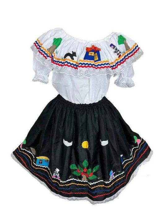 Colombia Traditional Dress Embrace the vibrant essence of Colombia with our Traditional Dress, elegantly crafted to reflect your style and cultural pride. This exquisite ensemble features a blouse and skirt, complemented by a charming flower clip, making it ideal for various occasions. Complete Set: Includes a beautifully designed blouse, flowing skirt, and a decorative flower clip for an authentic look. Size Range: Available in XSmall to XXLarge, ensuring a perfect fit for everyone. Skirt Length: Approximately 36 inches, offering a flattering silhouette. Material: Crafted from high-quality Poly Cotton (Dacrón) for ultimate comfort and style. Care Instructions: Recommended hand-wash to preserve fabric quality and longevity. This perfectly tailored dress allows you to showcase your love for Colombian heritage. Whether you're attending a festive celebration or enjoying a sunny day, this Traditional Dress will undoubtedly become a cherished addition to your wardrobe. Experience the joy of cultural expression and create beautiful memories with family and friends while wearing this stunning outfit! Check our collection: Colombian Collection