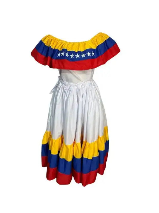 Celebrate the rich and vibrant culture of Venezuela with our Handmade Venezuelan Traditional Casual Dress. This stunning outfit features both a blouse and a skirt, allowing you to embrace a unique piece of tradition while looking fabulous. Perfectly tailored, this dress is designed for comfort and style, making it a must-have addition to your wardrobe. Complete Set: Each purchase comes with a beautifully designed blouse and a flowing skirt, offering a complete and authentic Dominican outfit. To add a special touch, we include a handmade flower clip for your hair. Size Range: Available in a wide range of sizes from XS to XXL, ensuring a perfect fit for everyone. Skirt Length: Skirt length is approximately 36 inches, designed to provide a flattering silhouette for all body types. Color Options: Featuring White, Yellow, Red, and Blue, allowing you to represent Venezuela with pride. Material: Made from high-quality polyester, ensuring durability and comfort for everyday wear. Easy Care: Machine wash or hand-wash for hassle-free cleaning, helping to maintain the dress's vibrancy and shape over time. Make every occasion special with our Venezuelan Traditional Casual Dress. Its unique design and cultural significance make it a perfect choice for gatherings, festivals, or everyday wear. Show off your beautiful dress and share this piece of tradition with family and friends! Check our collection: Venezuela Collection