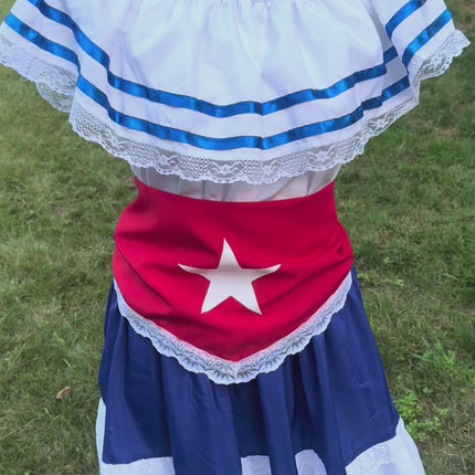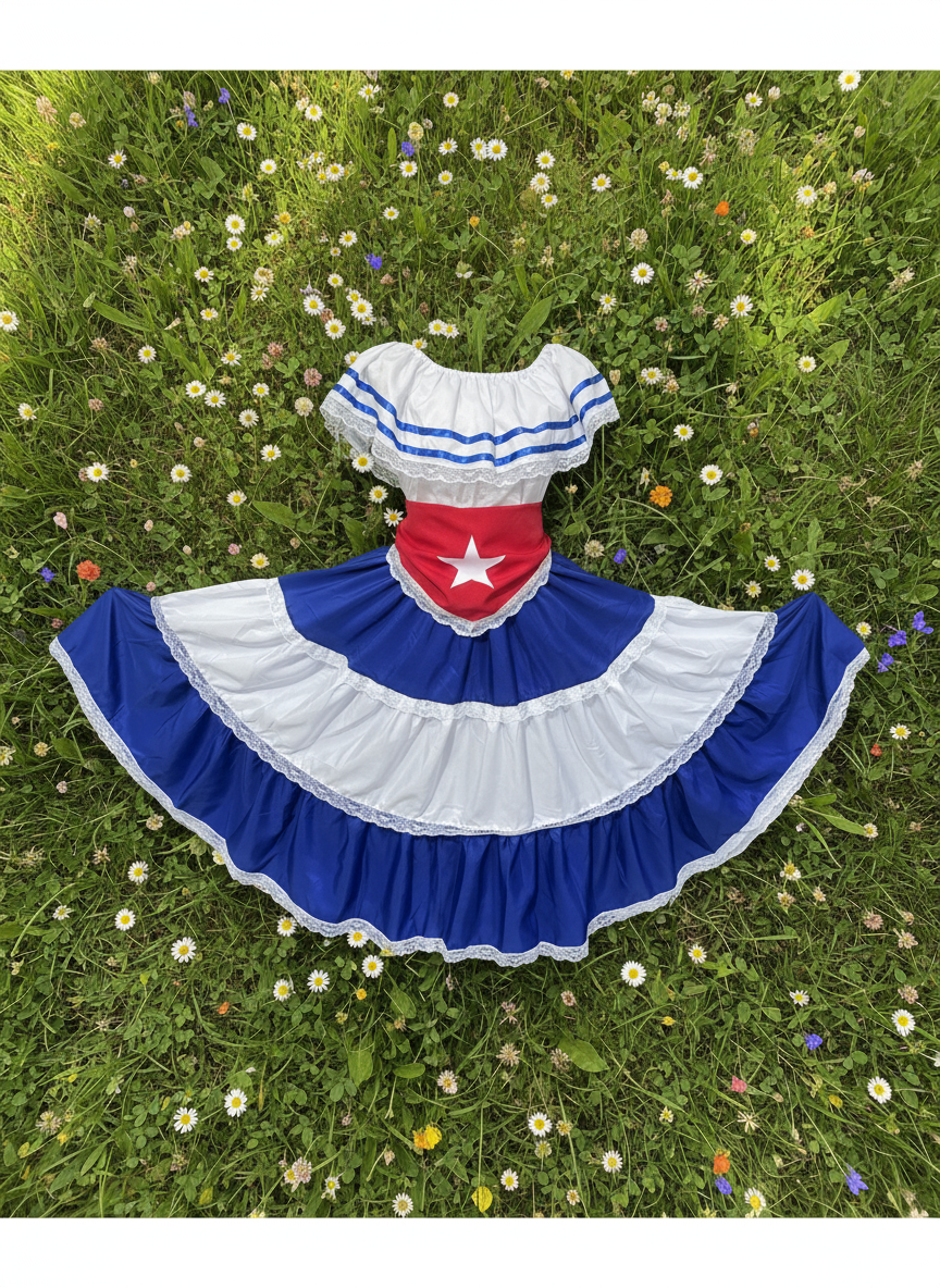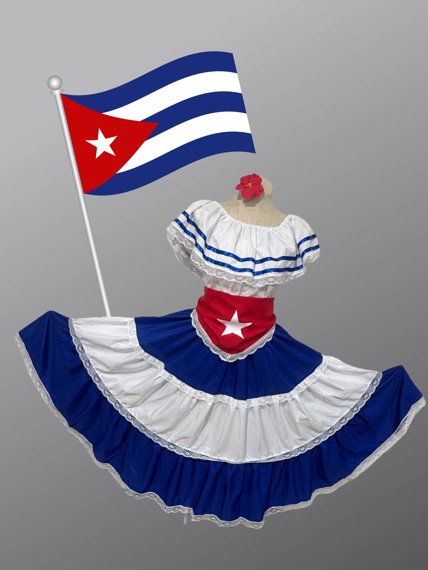 Caribbean Havana Fiesta Adult Dress - Traditional Attire with Red Star Flag Scarf
