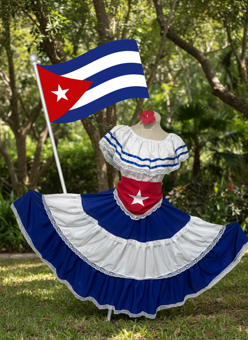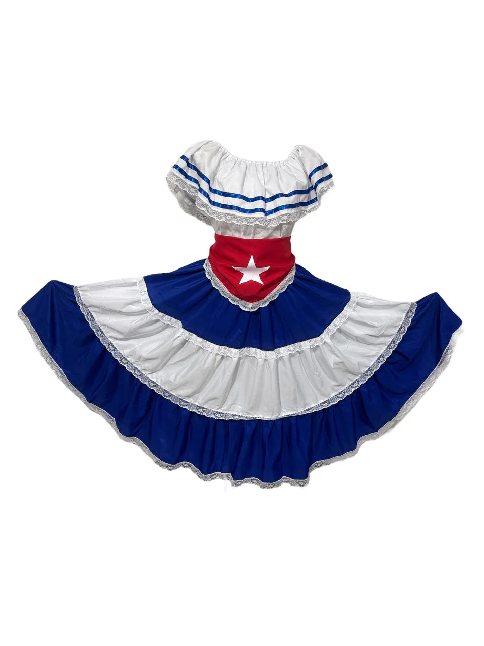 Caribbean Havana Fiesta Girl Dress - Traditional Attire with Red Star Flag Scarf