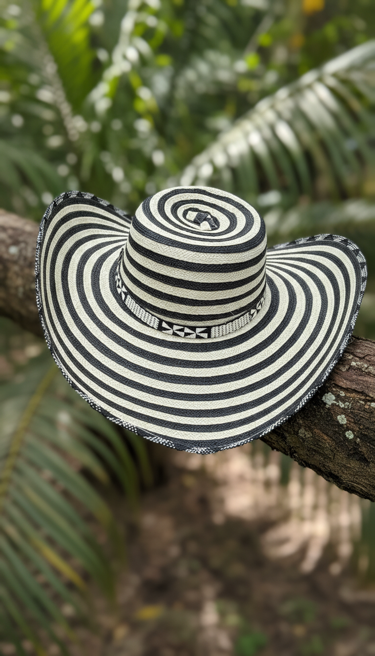 El Sombrero Costeño Blanco y Negro aporta un toque audaz de la cultura costera colombiana a tu guardarropa. Hecho a mano por artesanos, este sombrero es tanto una declaración de moda como un emblema cultural.