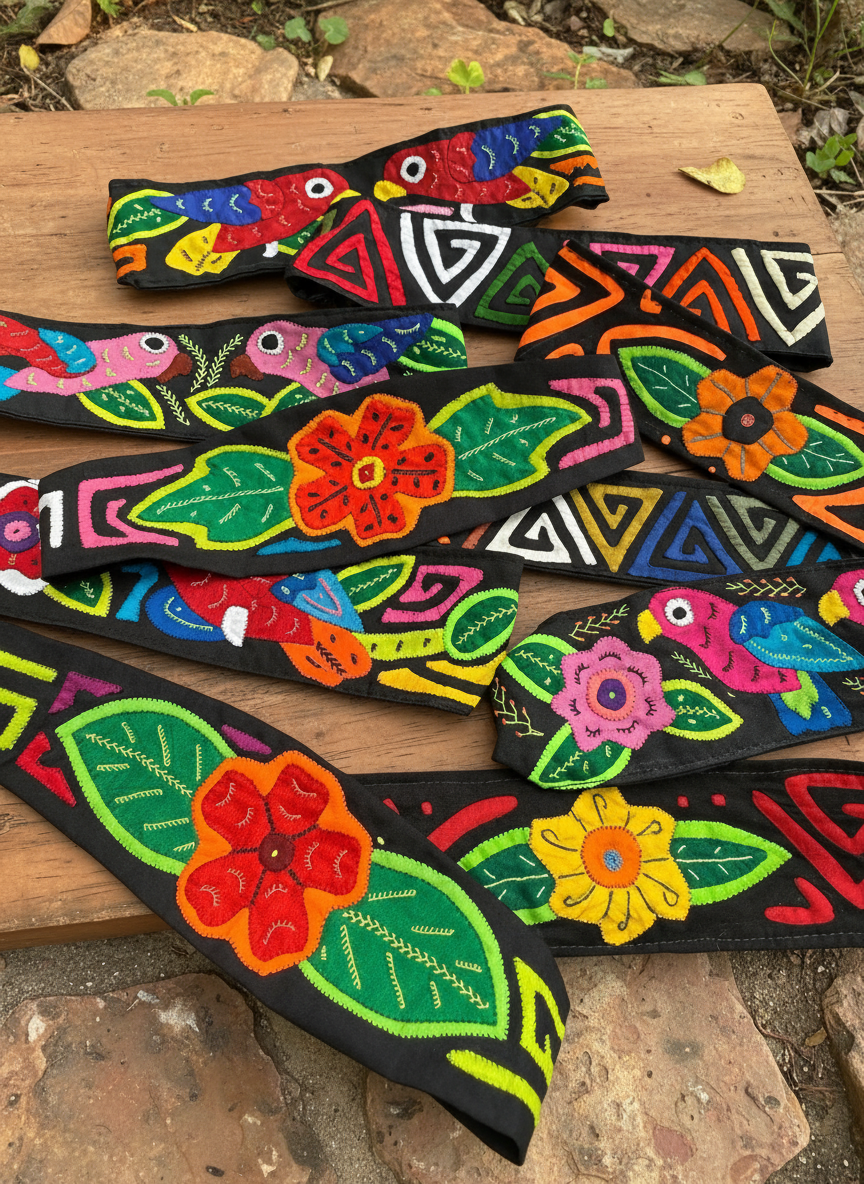 Diademas con espalda elástica panameña auténticas hechas a mano de Mola