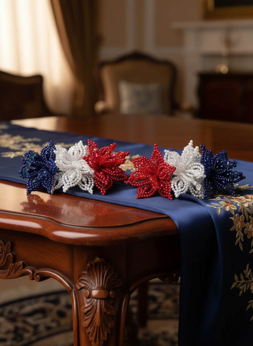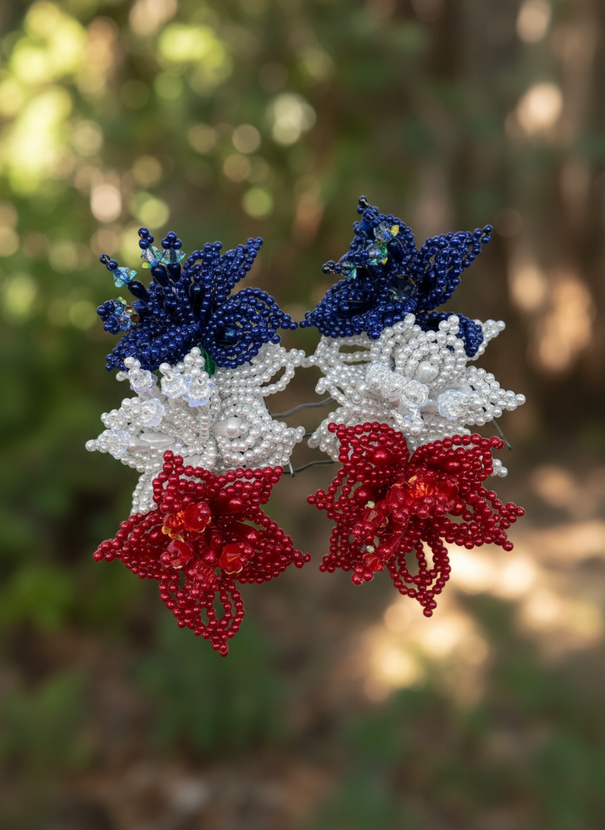 Par de horquillas para el pelo con forma de flor de Tapamoños (rojo, blanco y azul)