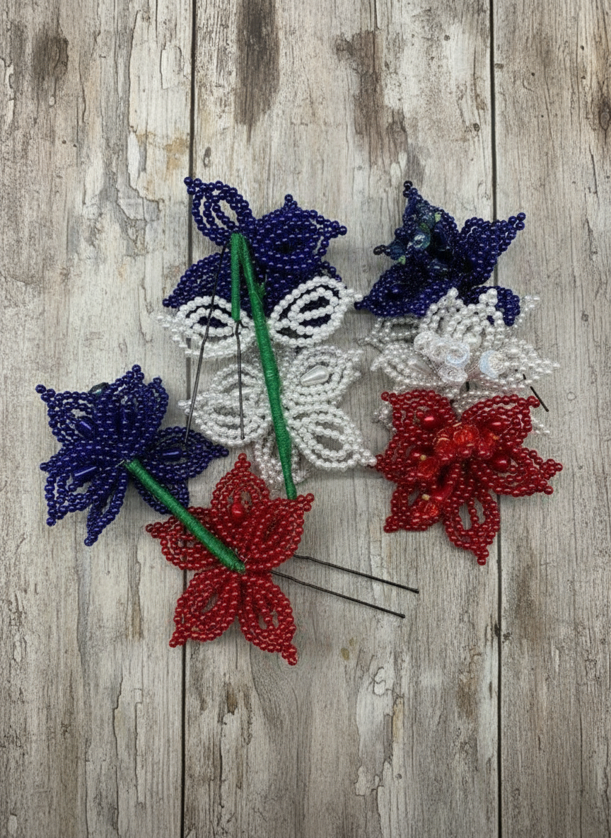Flores de tembleque de perlas blancas hechas a mano en alfileres tradicionales. Los tembleques son accesorios tradicionales panameños que se... Leer más...