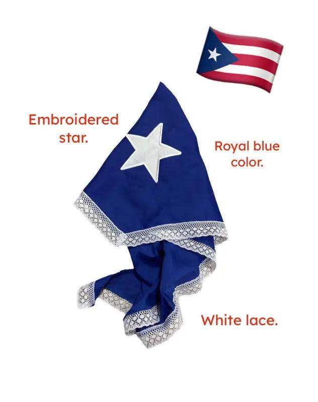Bandana bleu avec étoile blanche Pañoleta Azul pour robe portoricaine