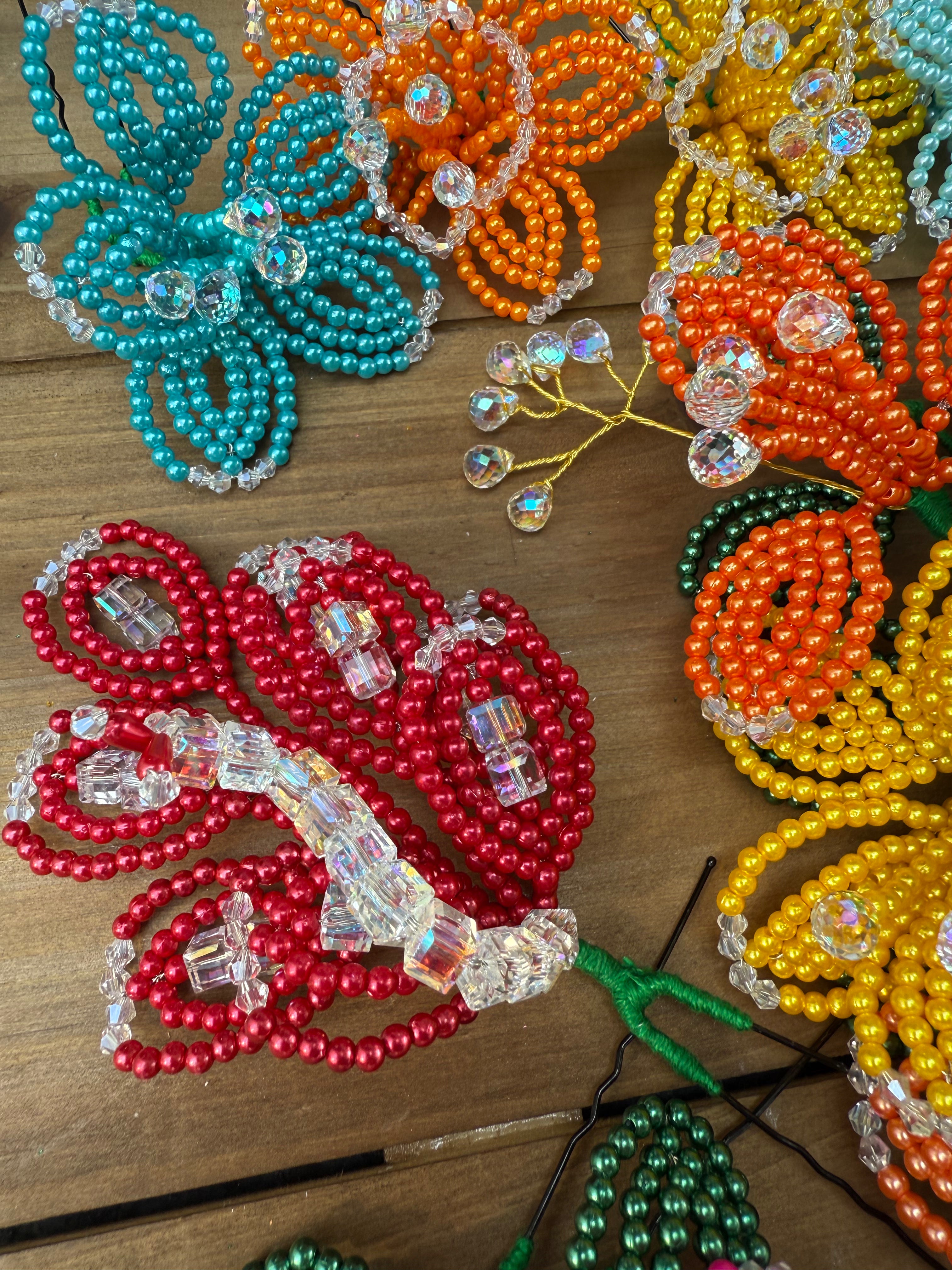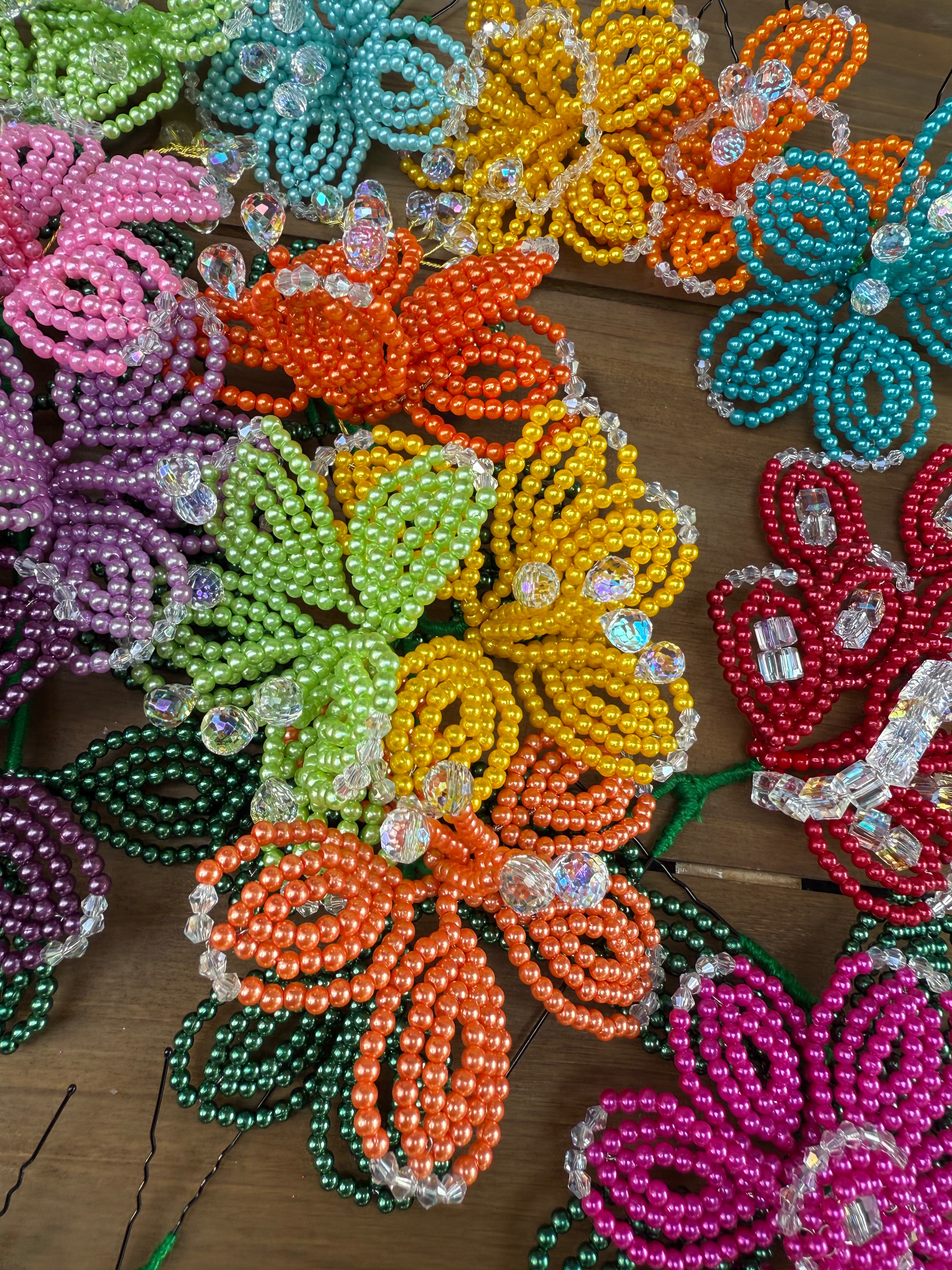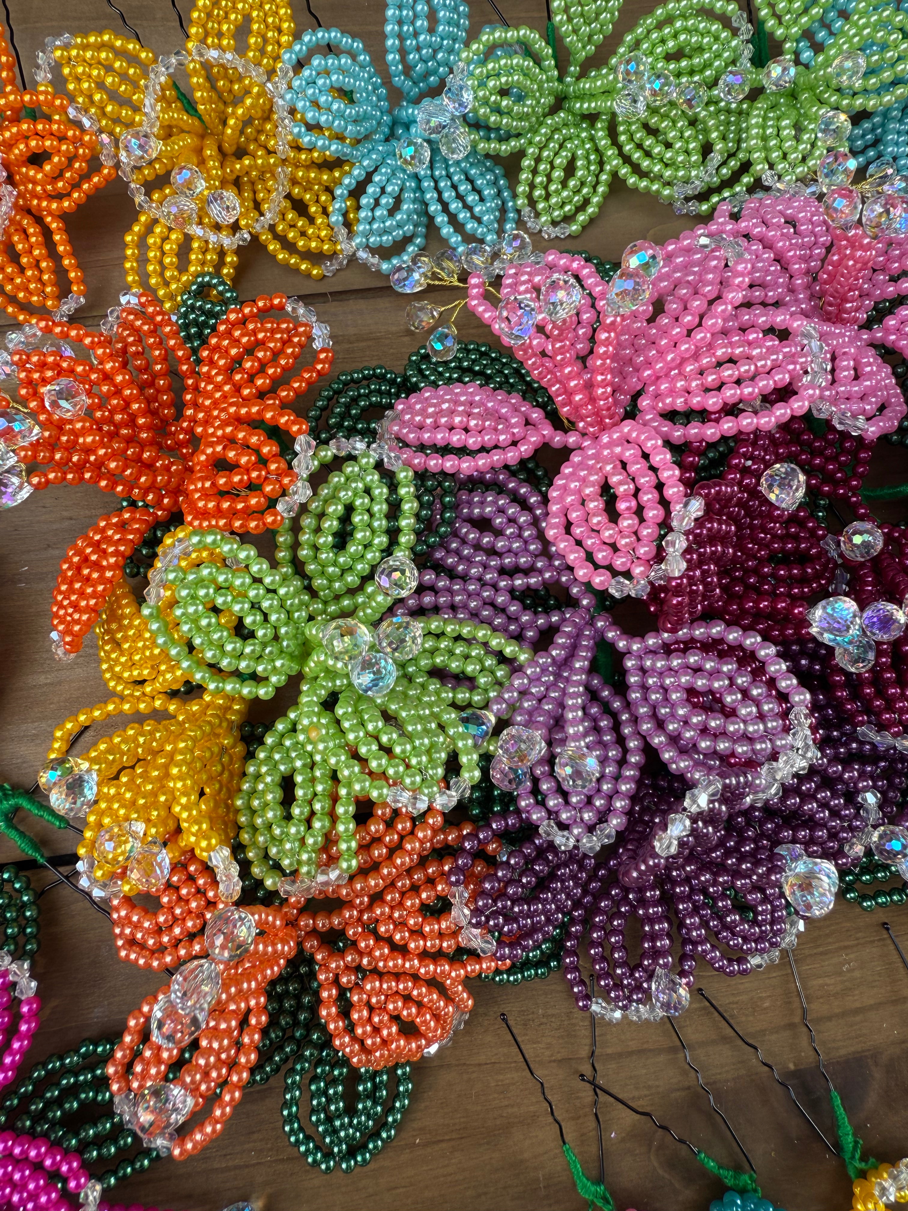 Fleurs perlées de tembleque de perles colorées faites à la main sur des épingles traditionnelles. Les tembleques sont des accessoires... En savoir plus