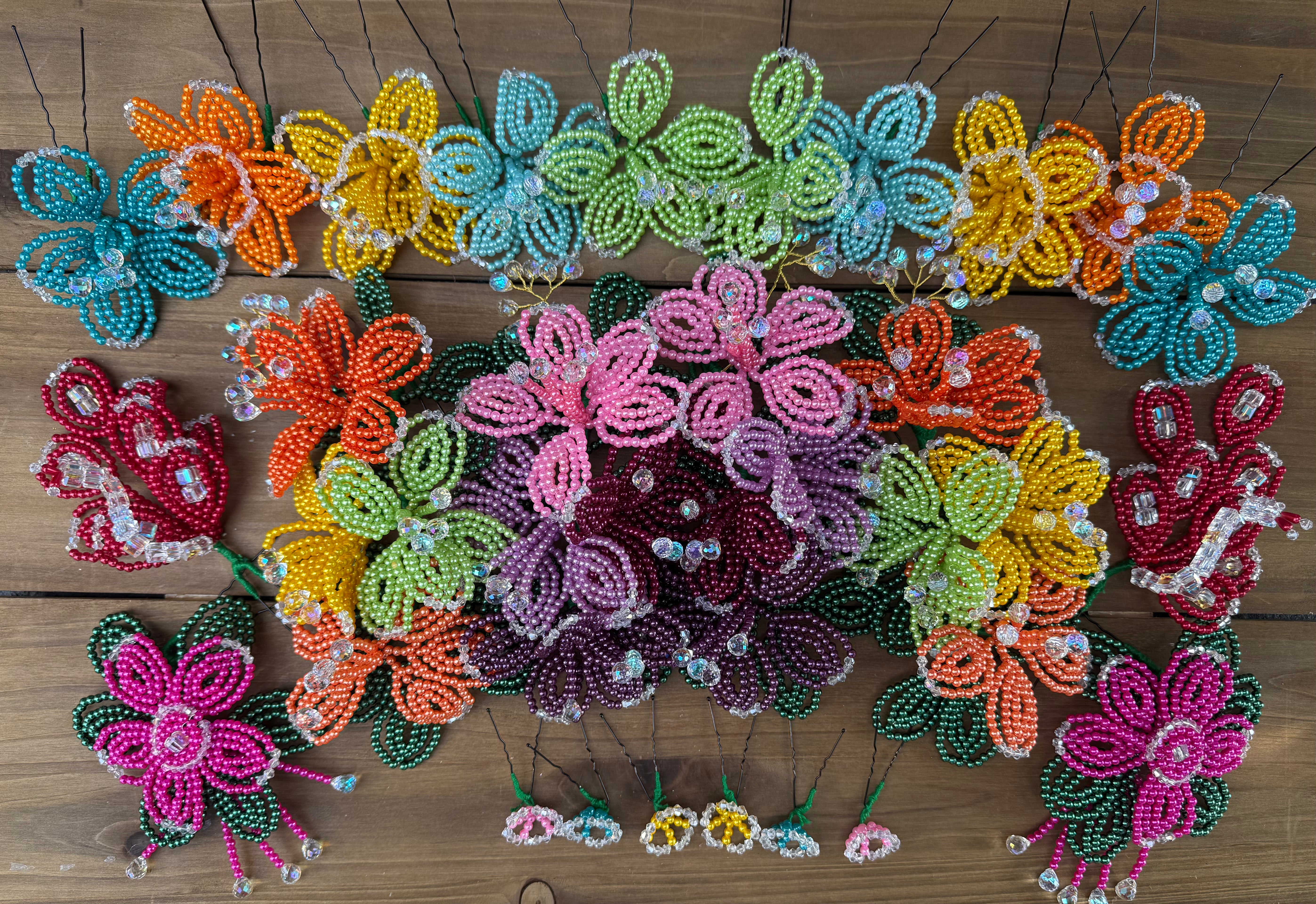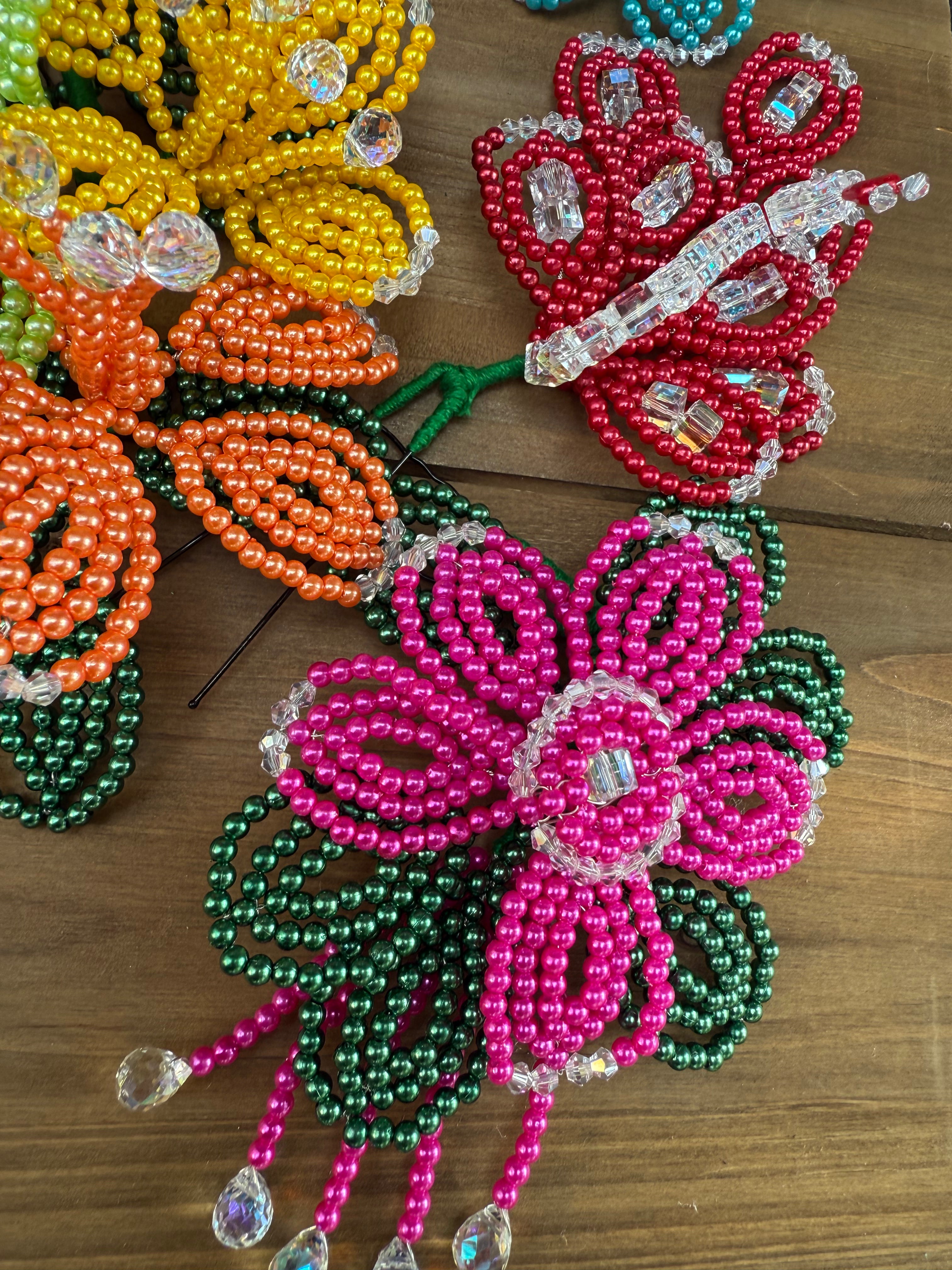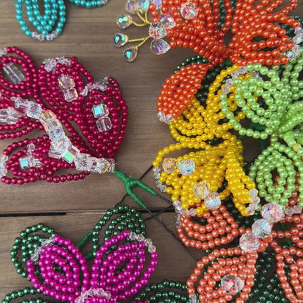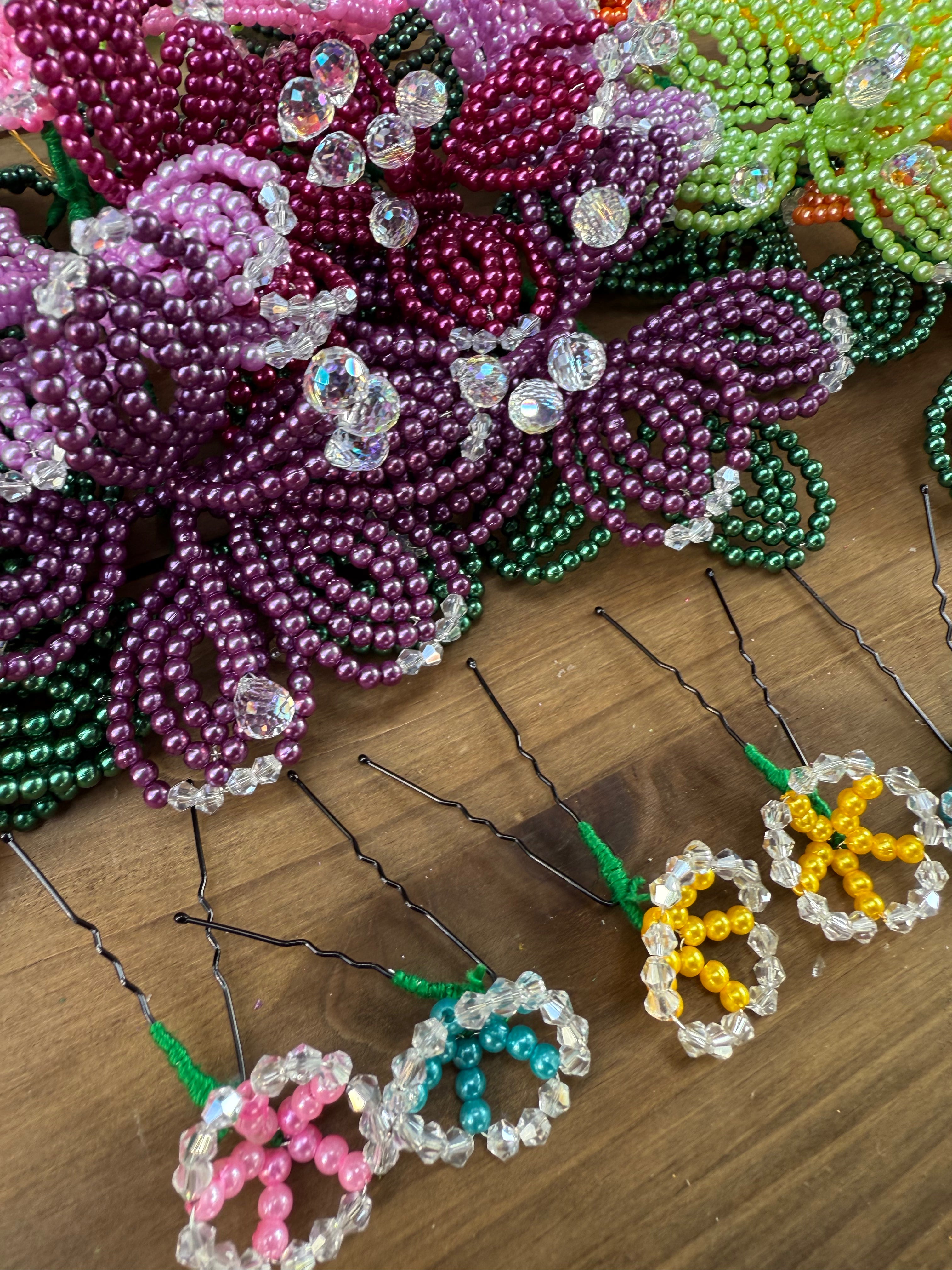 Fleurs perlées de tembleque de perles colorées faites à la main sur des épingles traditionnelles. Les tembleques sont des accessoires... En savoir plus