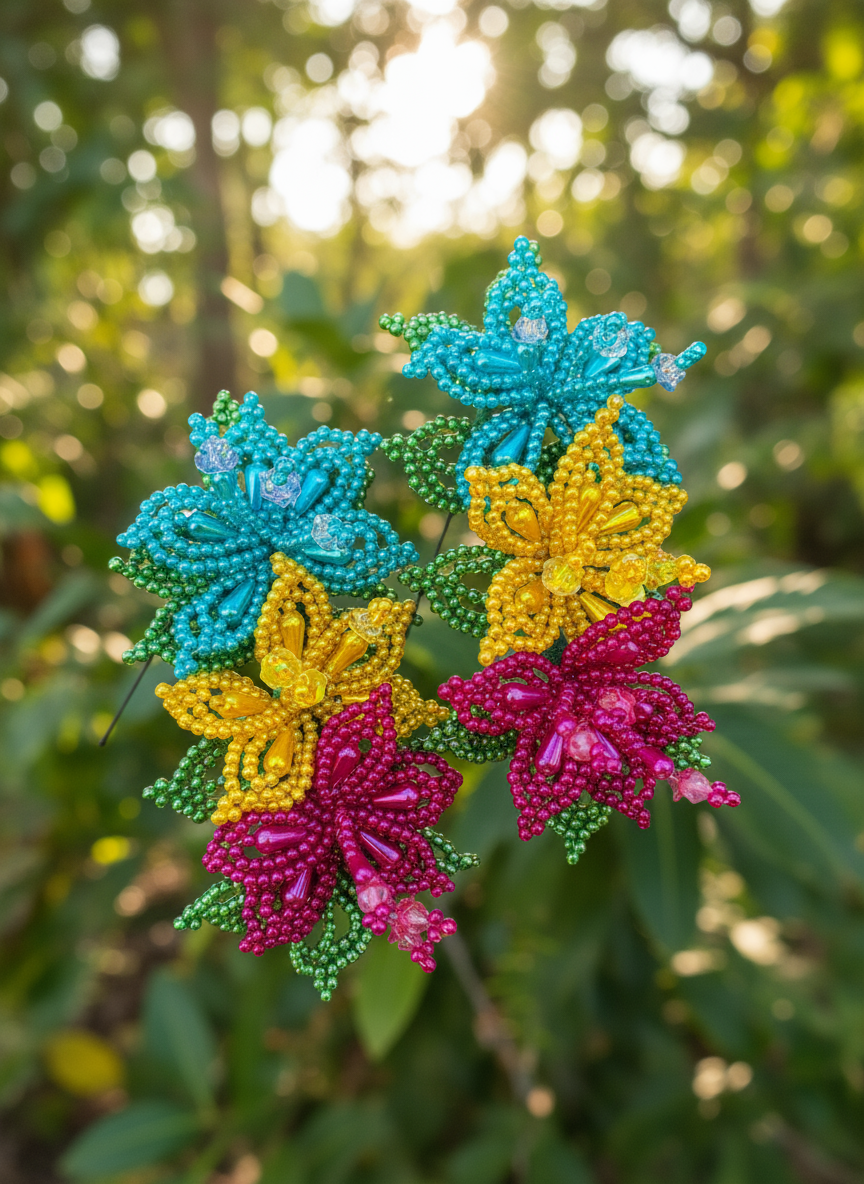Fleurs perlées de tembleque de perles colorées faites à la main sur des épingles traditionnelles. Les tembleques sont des accessoires... En savoir plus