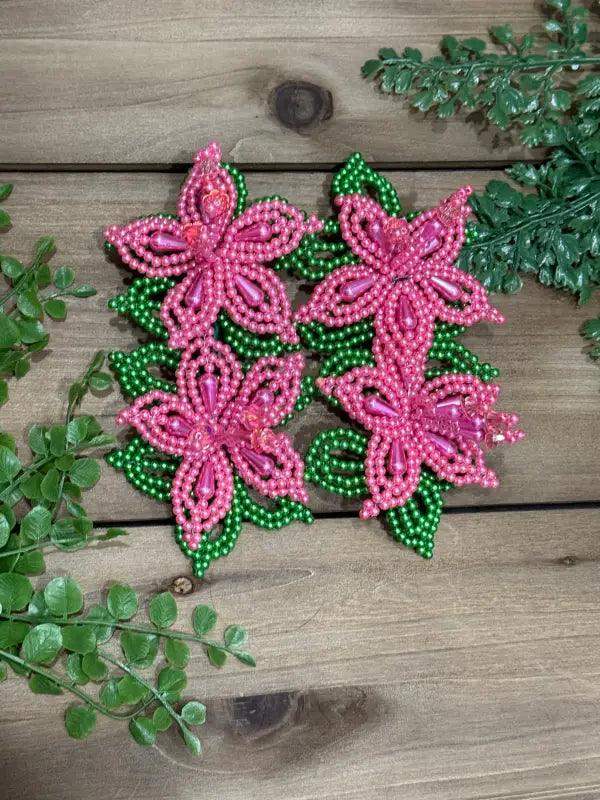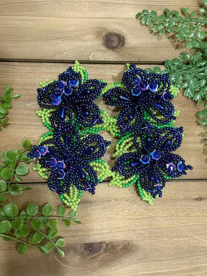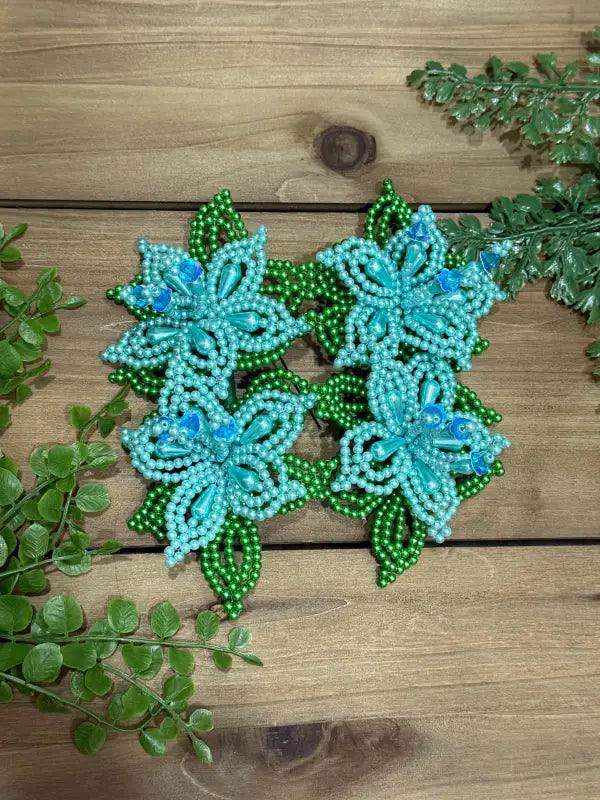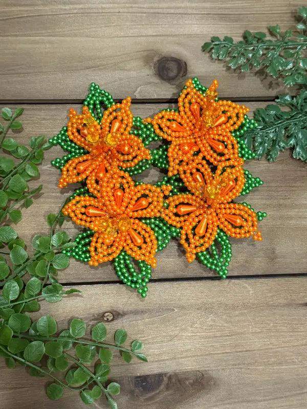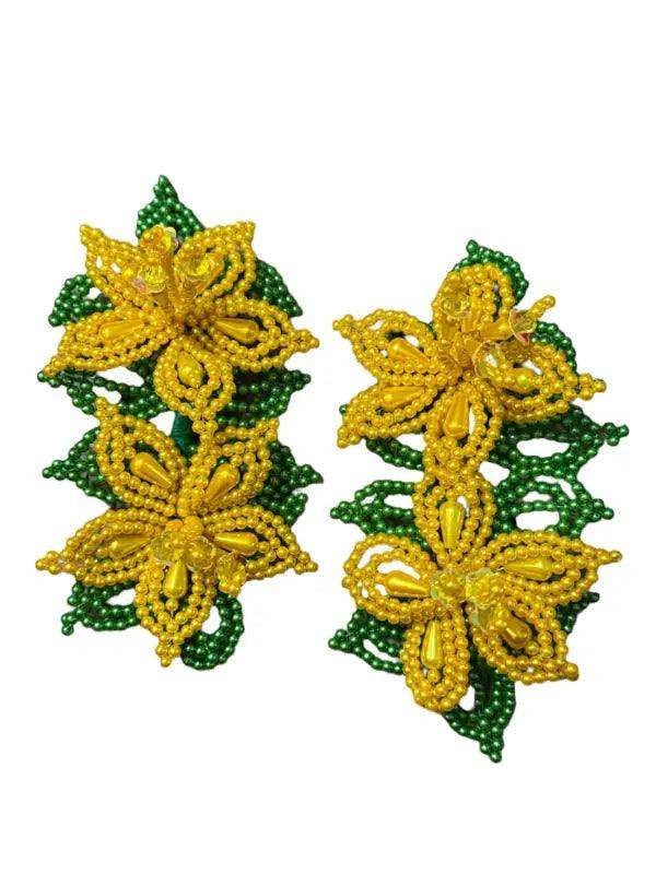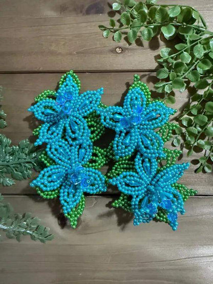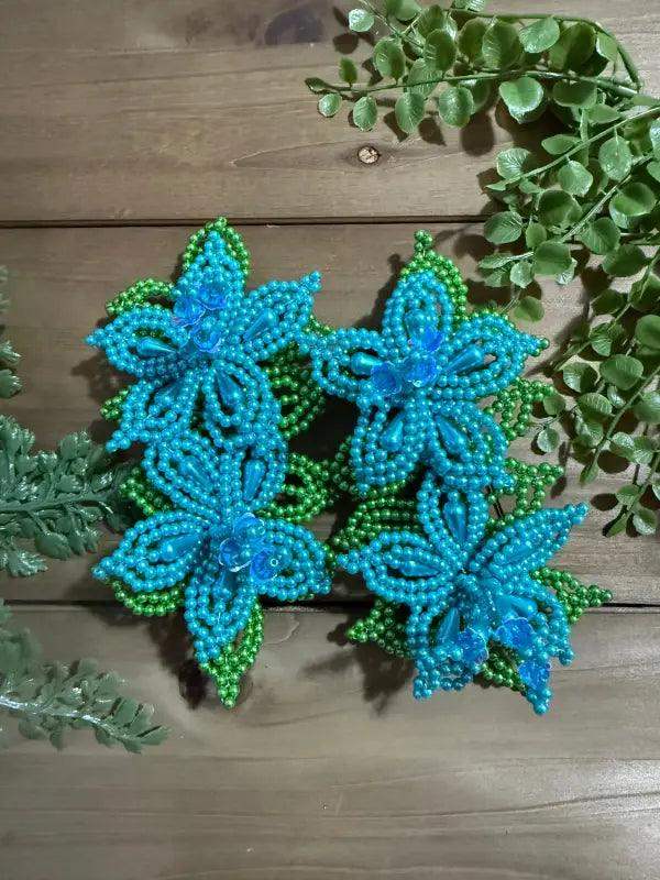 Paire (2) de Tapamoños Tembleques Colorful Beaded Flower Pearl Panama Pollera Hair Pin