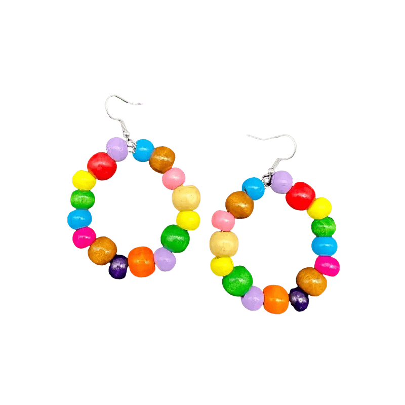 Rehaussez votre style avec nos boucles d'oreilles en perles de bois multicolores, un complément parfait à votre ensemble Pollera Congo... En savoir plus