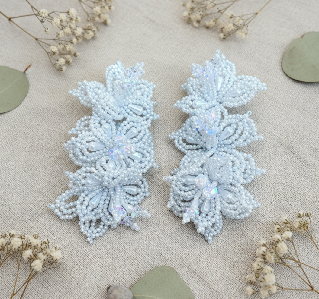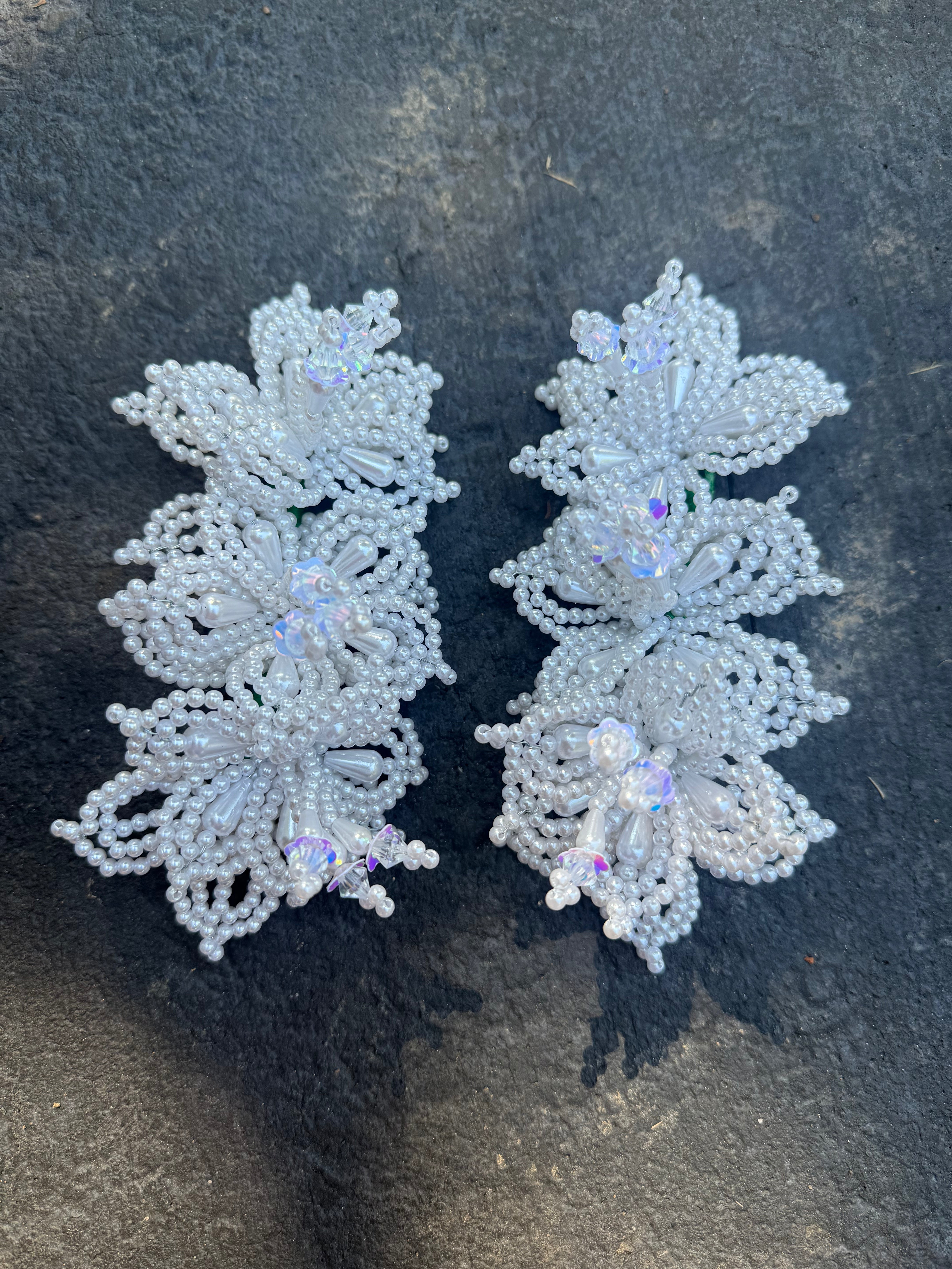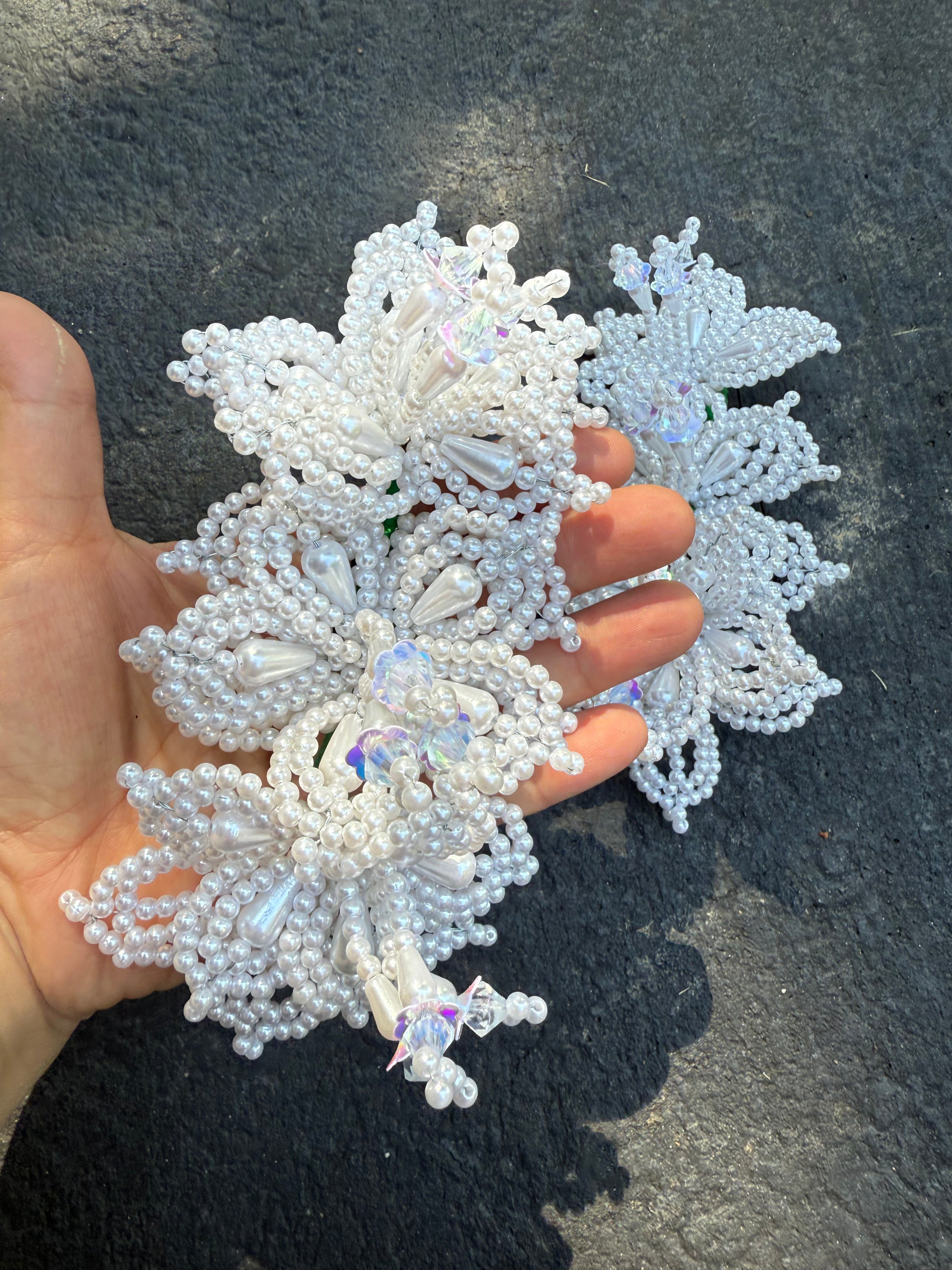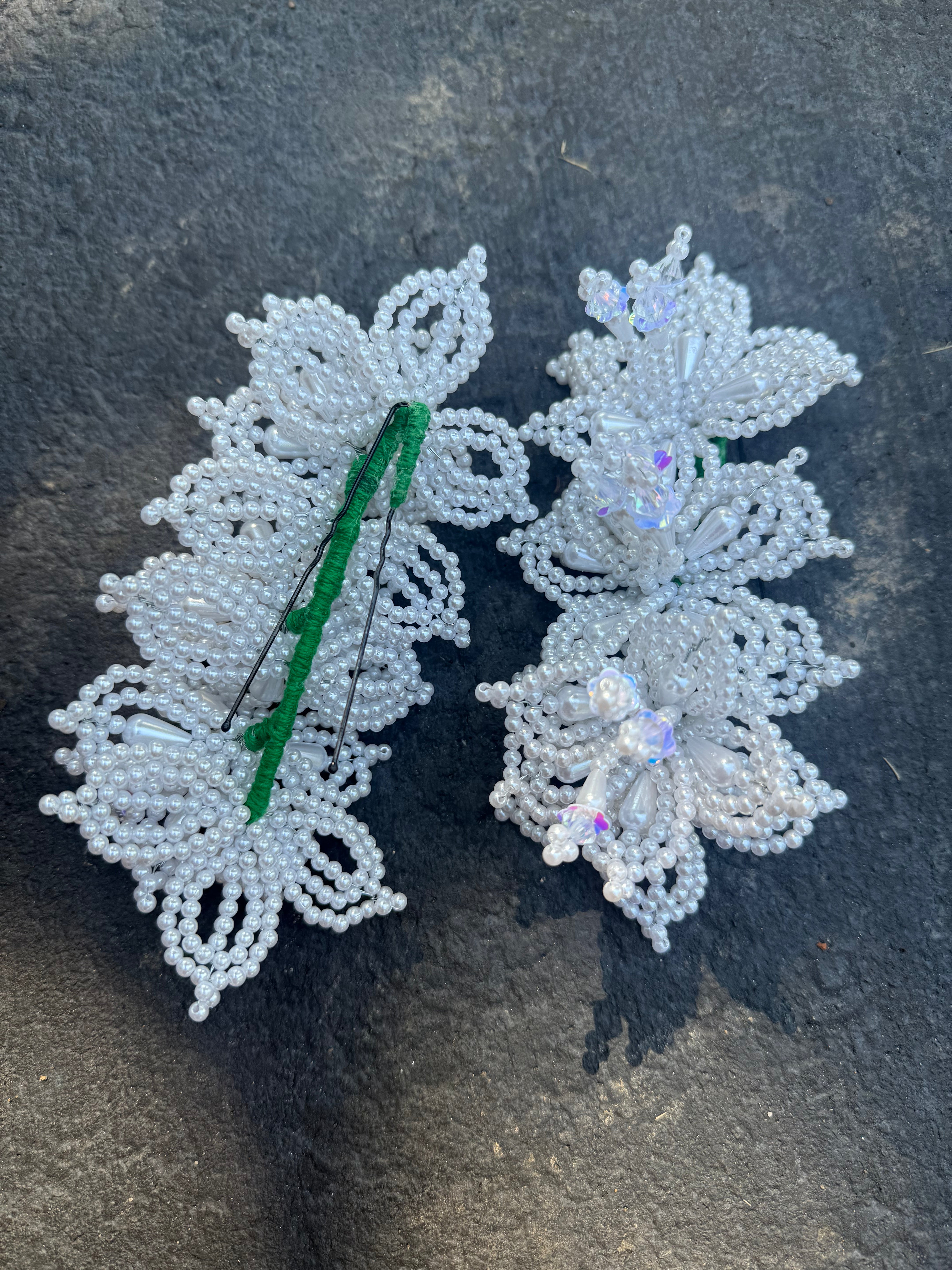 Fleurs perlées de tembleque de perles blanches faites à la main sur des épingles traditionnelles. Les tembleques sont des accessoires... En savoir plus