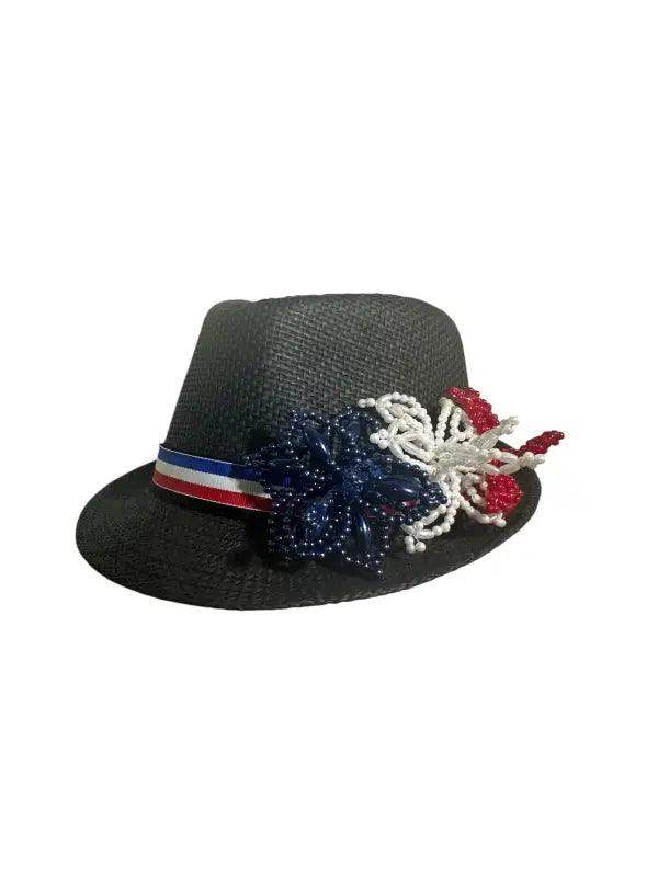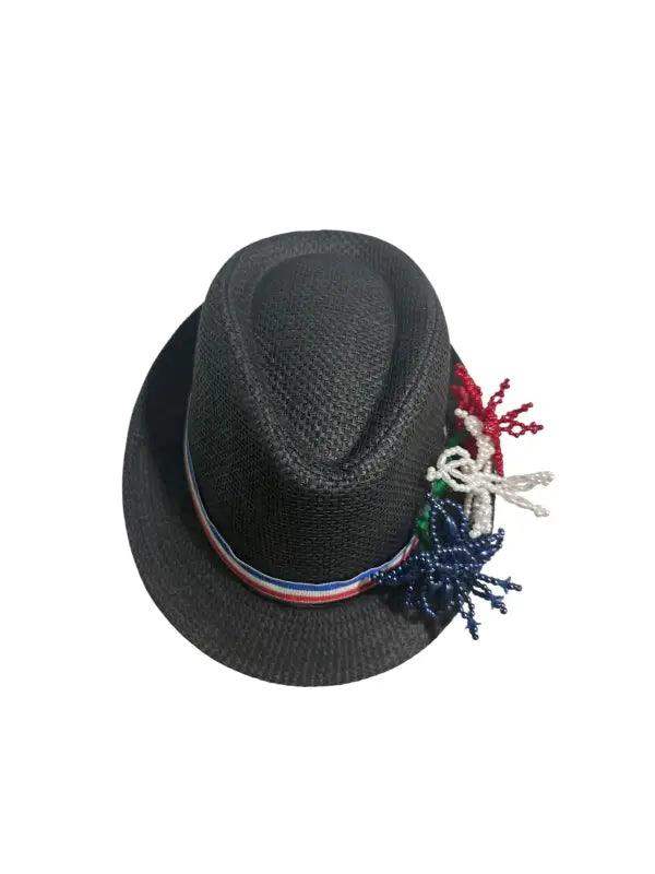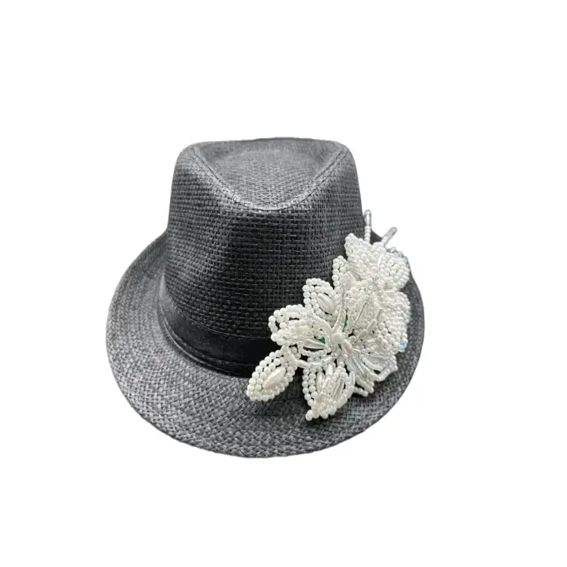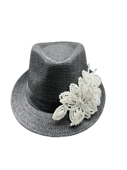 Chapeau Panama / chapeau fedora en paille noir décoré d'une fleur de tembleque en perles de perles faites à la... En savoir plus