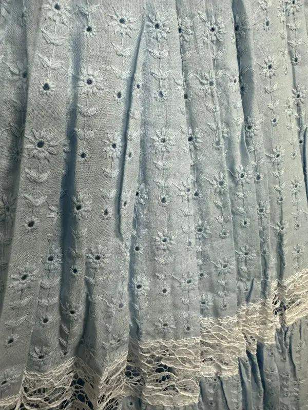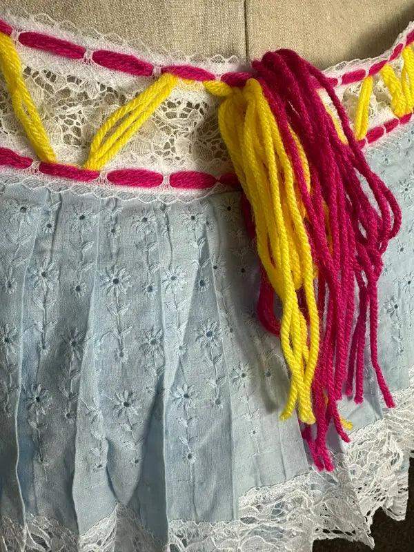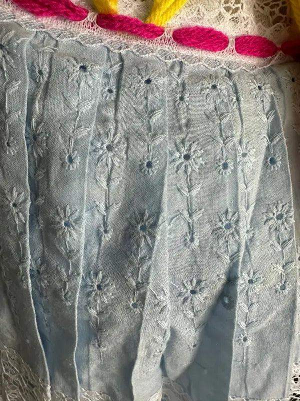Un chemisier et une jupe faits main, élégamment conçus avec des fleurs brodées. Chaque ensemble est livré avec un fil et un ruban gratuits, ajoutant une touche festive à votre ensemble.