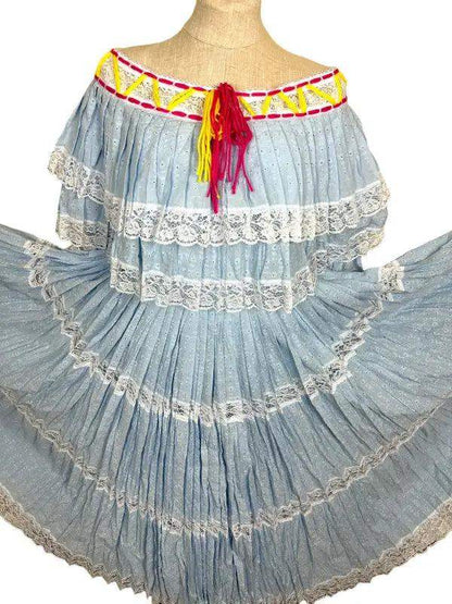 Adoptez la tradition : robe traditionnelle panaméenne, Pollera de Letin avec pompon et ruban gratuits