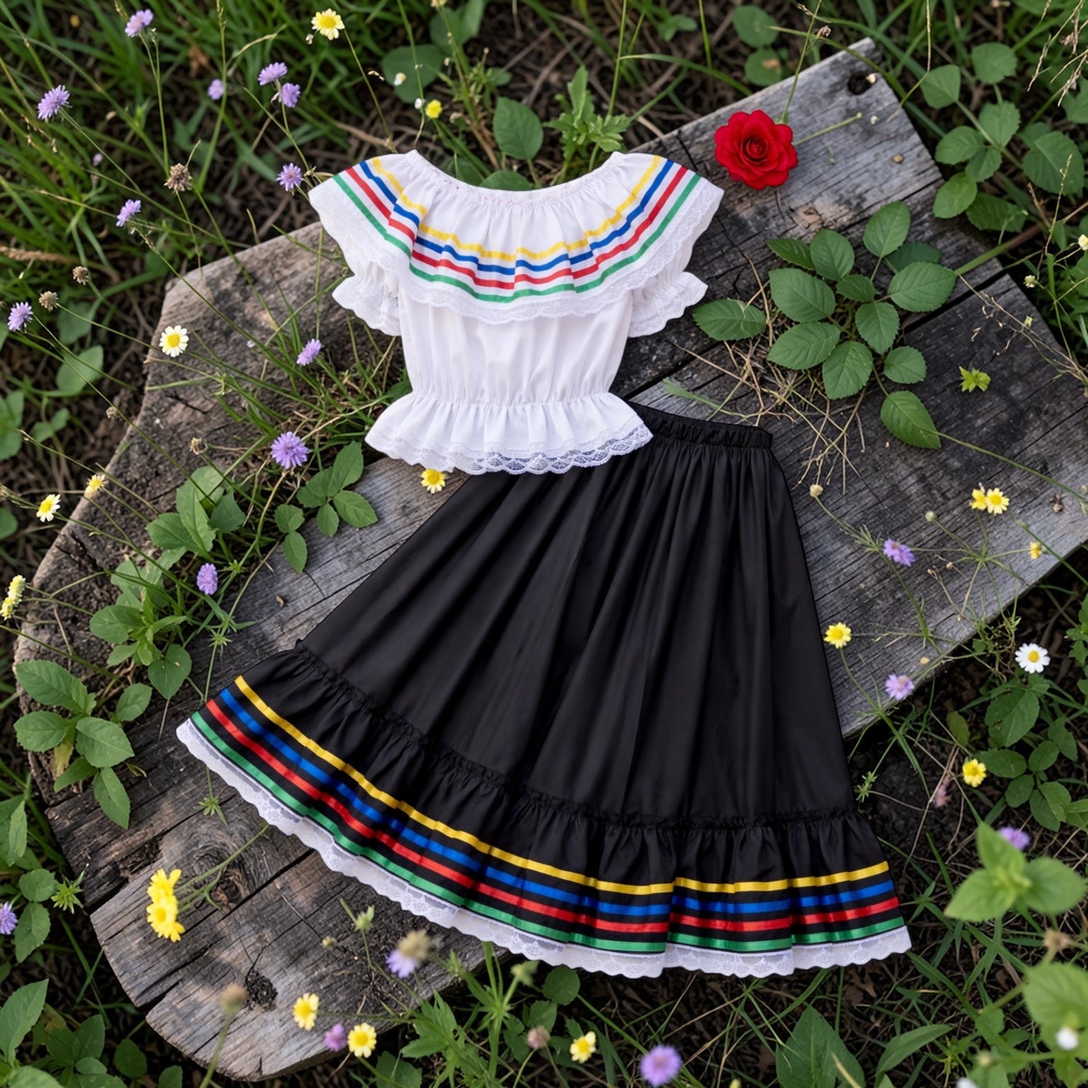 Embrace Colombian tradition with this Colombian Campesina dress, a complete blouse-and-skirt set. Complete set: Includes both a blouse and a... Read more