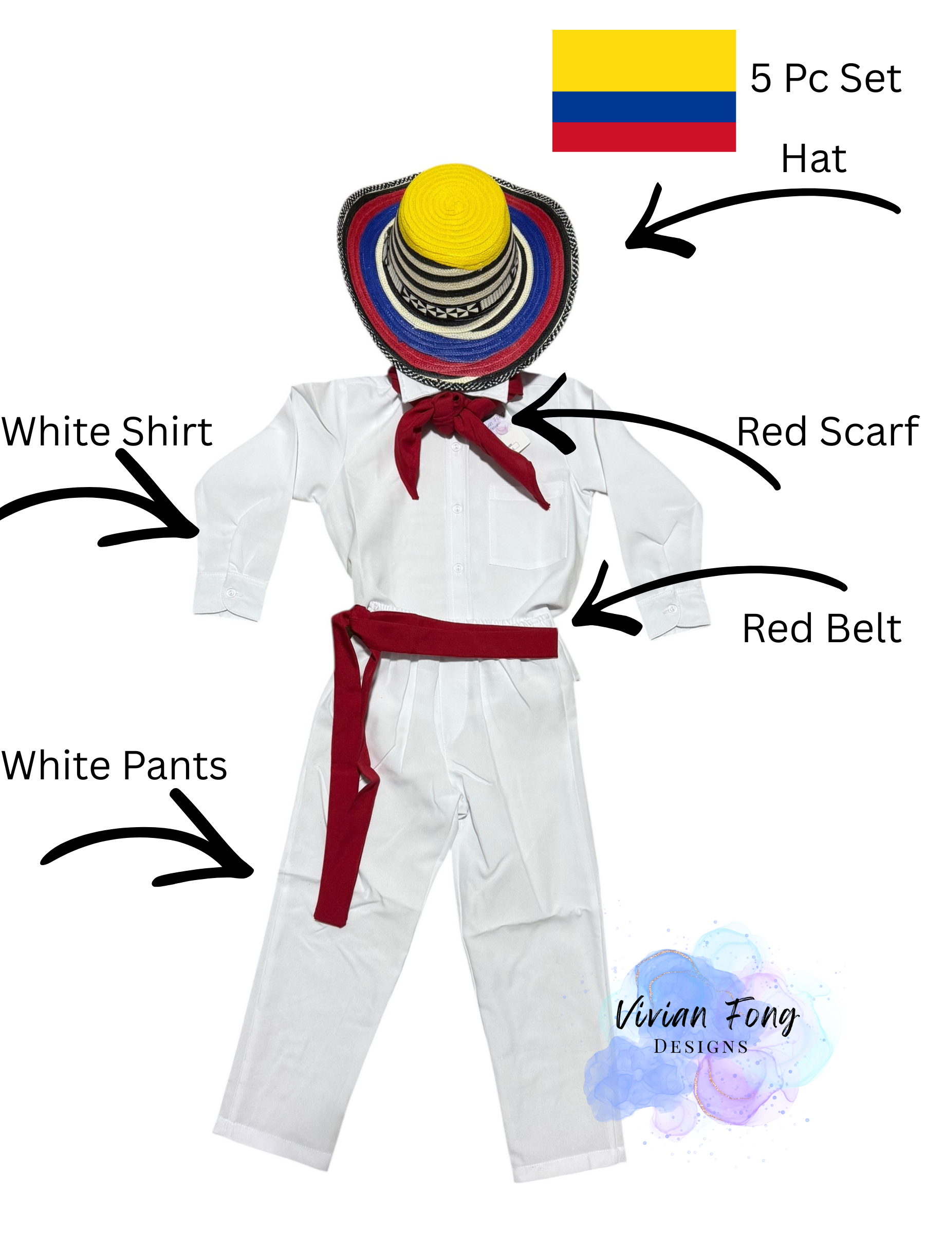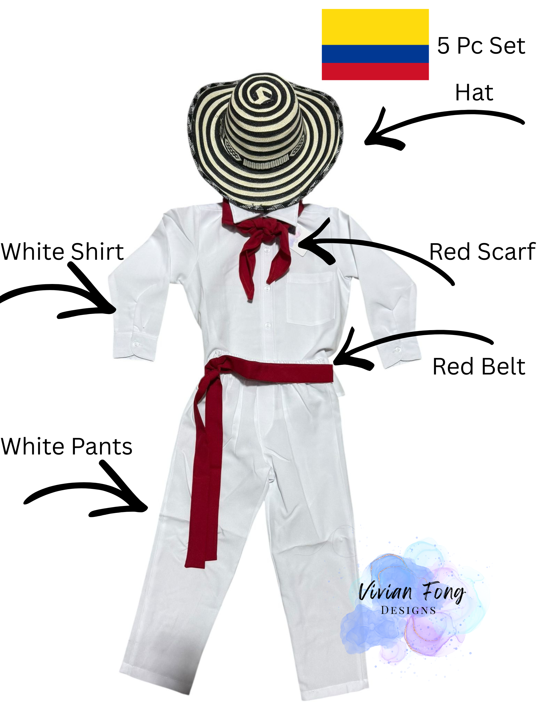 Colombian Dress 5pc Set for Boys with Sombrero Vueltiao [Niño]