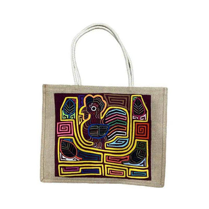 Handwoven Panamanian Ethnic Large Tote Bag with Mola Designs