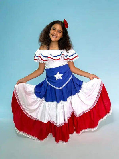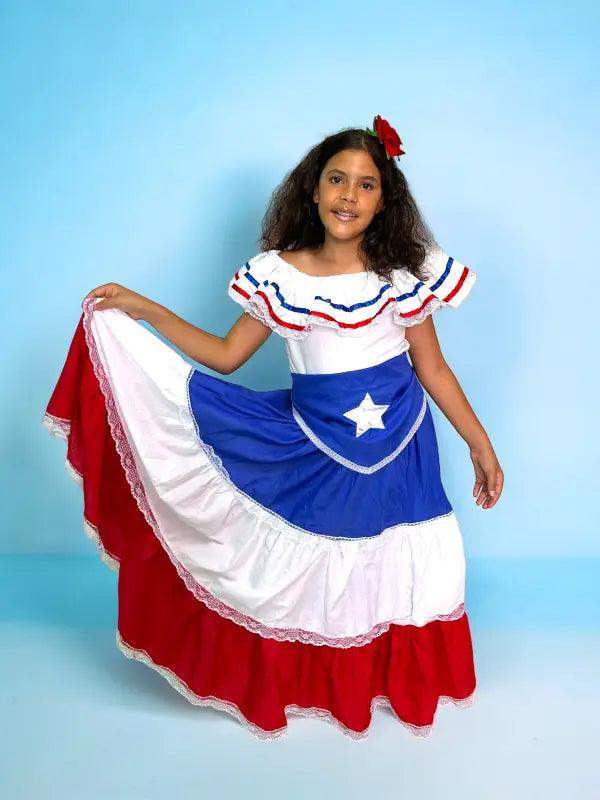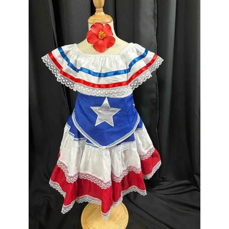 Puerto Rican Traditional Girl Fiesta Dress with Flag and Star Belt - old listing