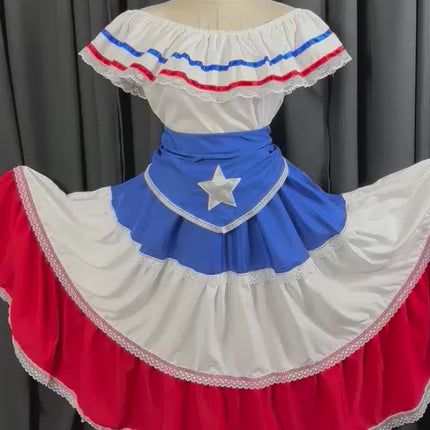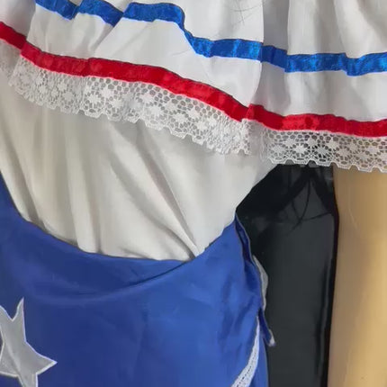 Puerto Rican Traditional Women Fiesta Dress with Blue Flag & Star Belt